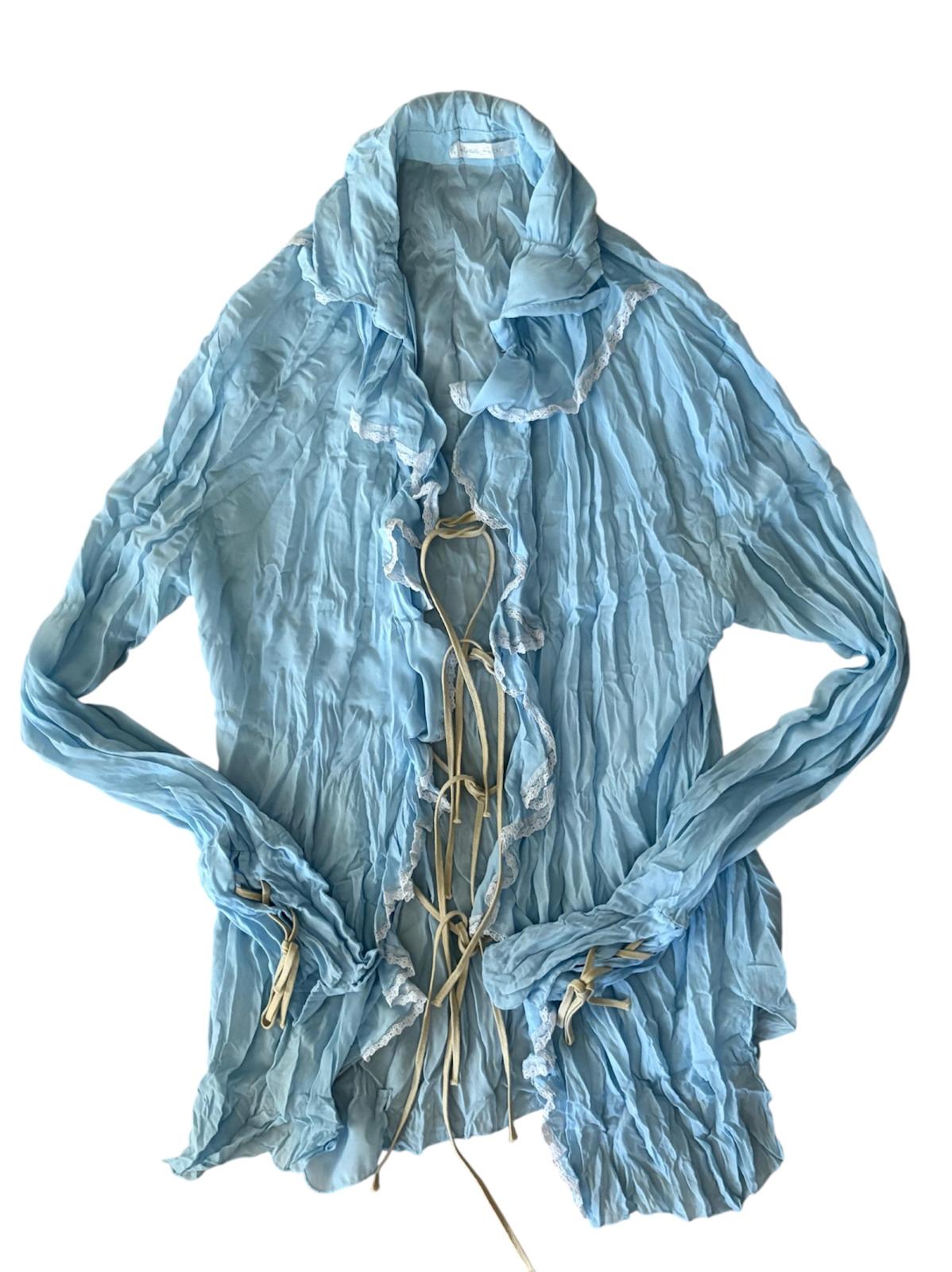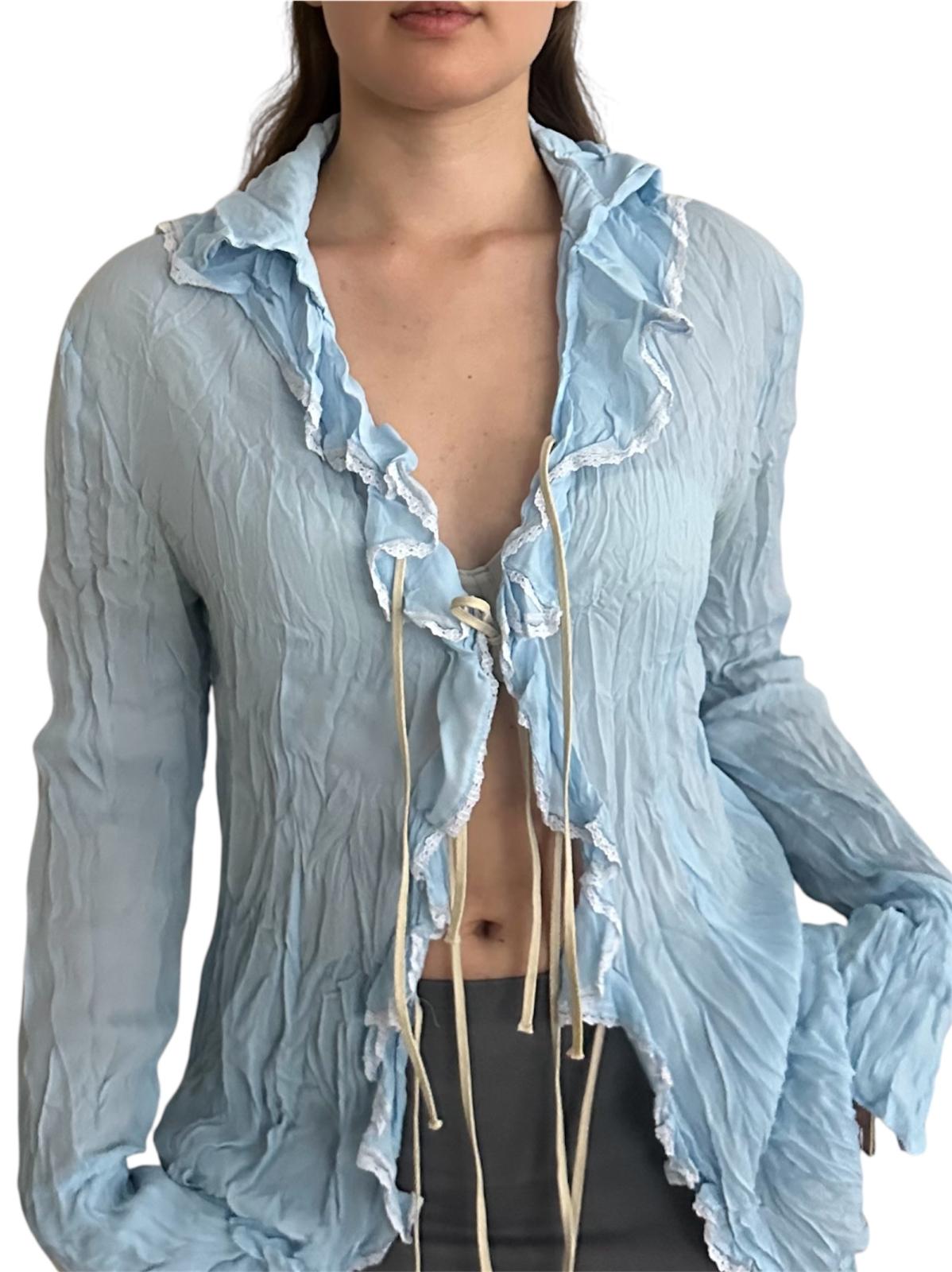Bebek Mavisi Fırfırlı İpli Gömlek