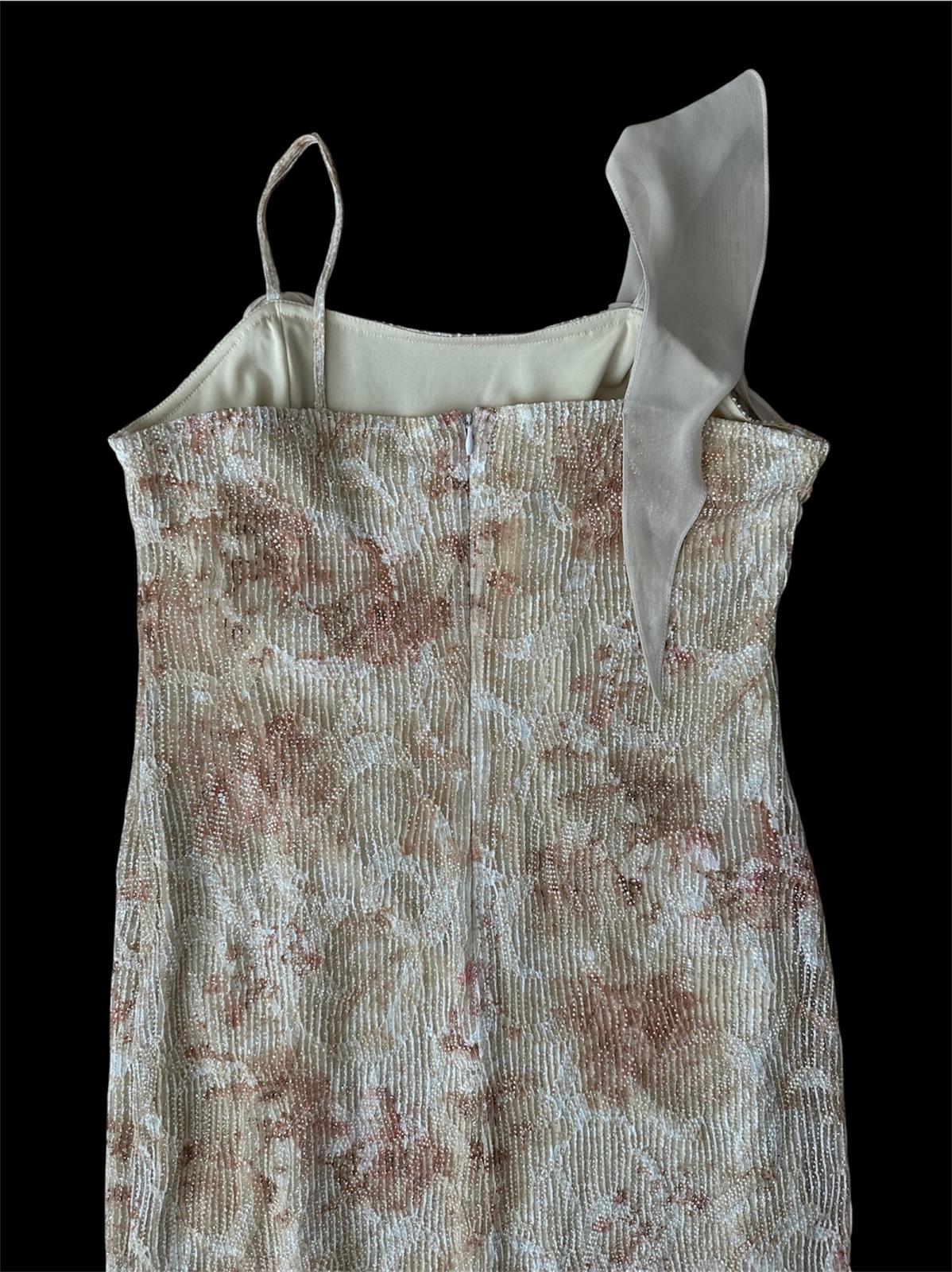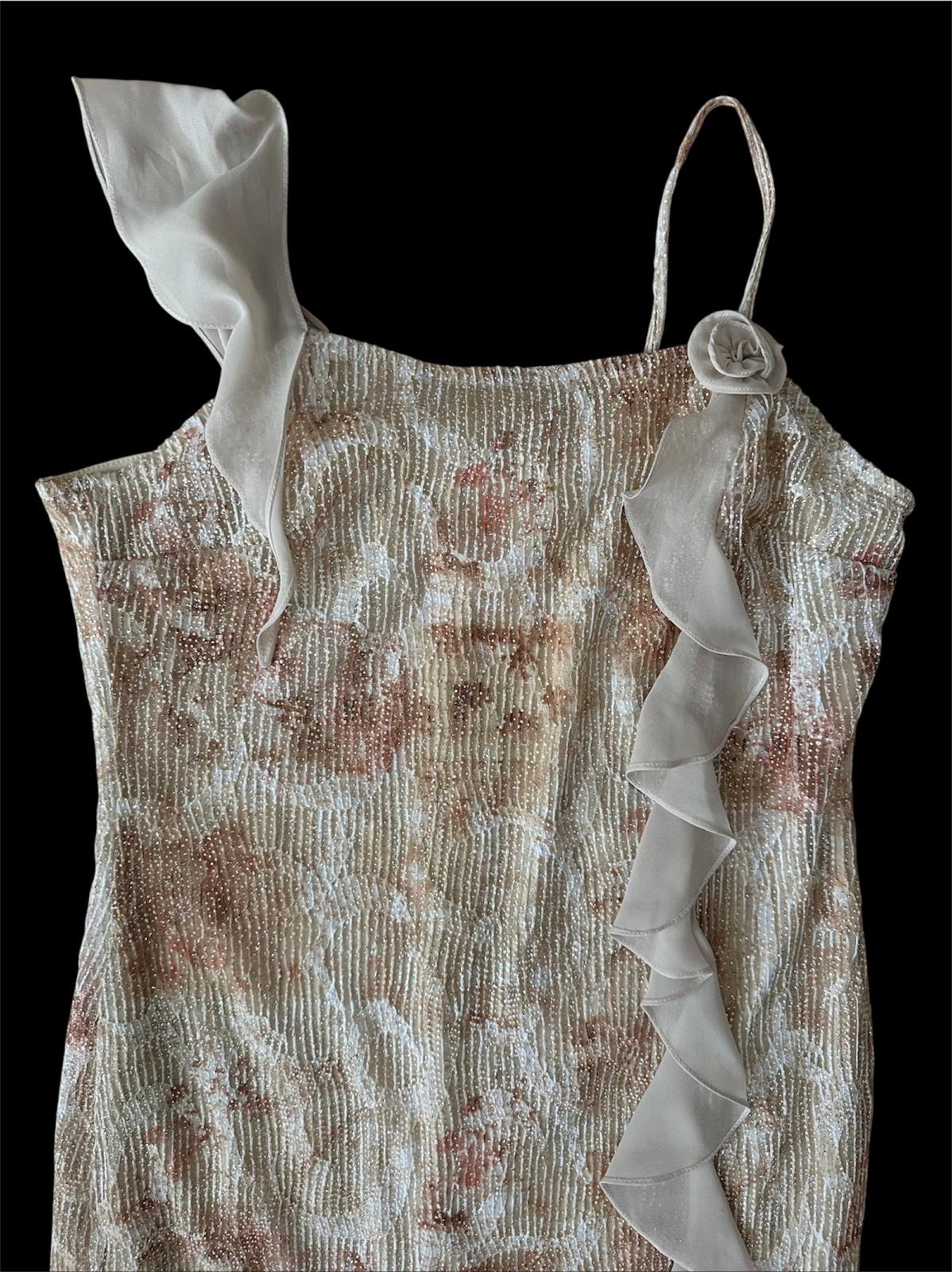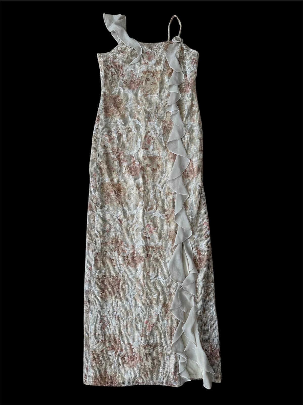 Bej Simli & Fırfırlı Gece Elbisesi