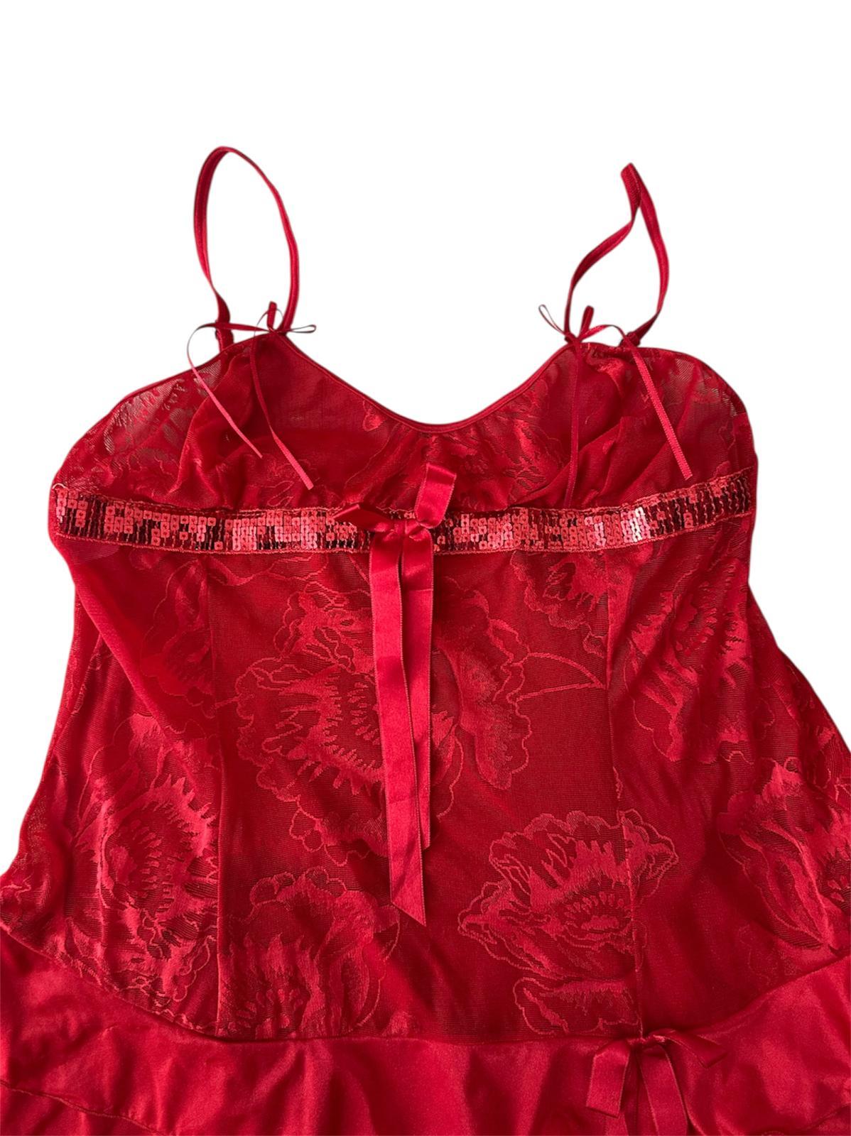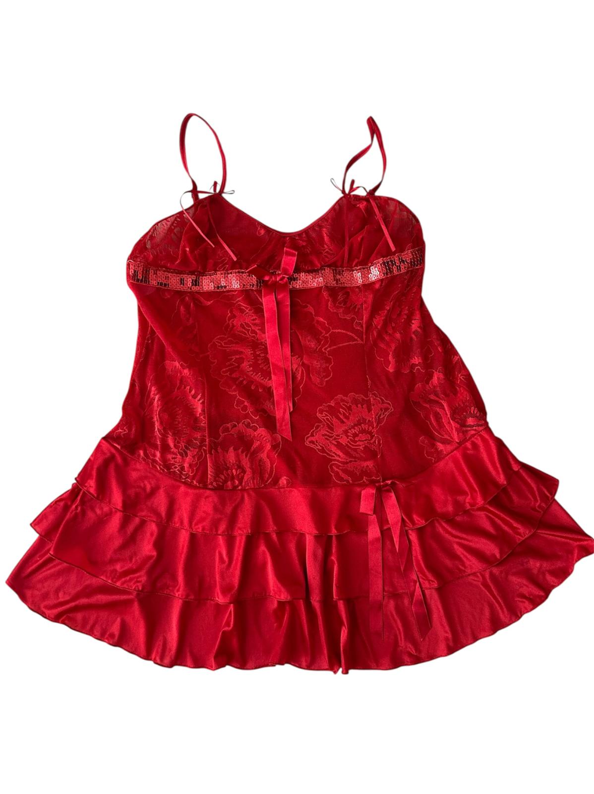 Kırmızı Payetli Fırfırlı Bluz