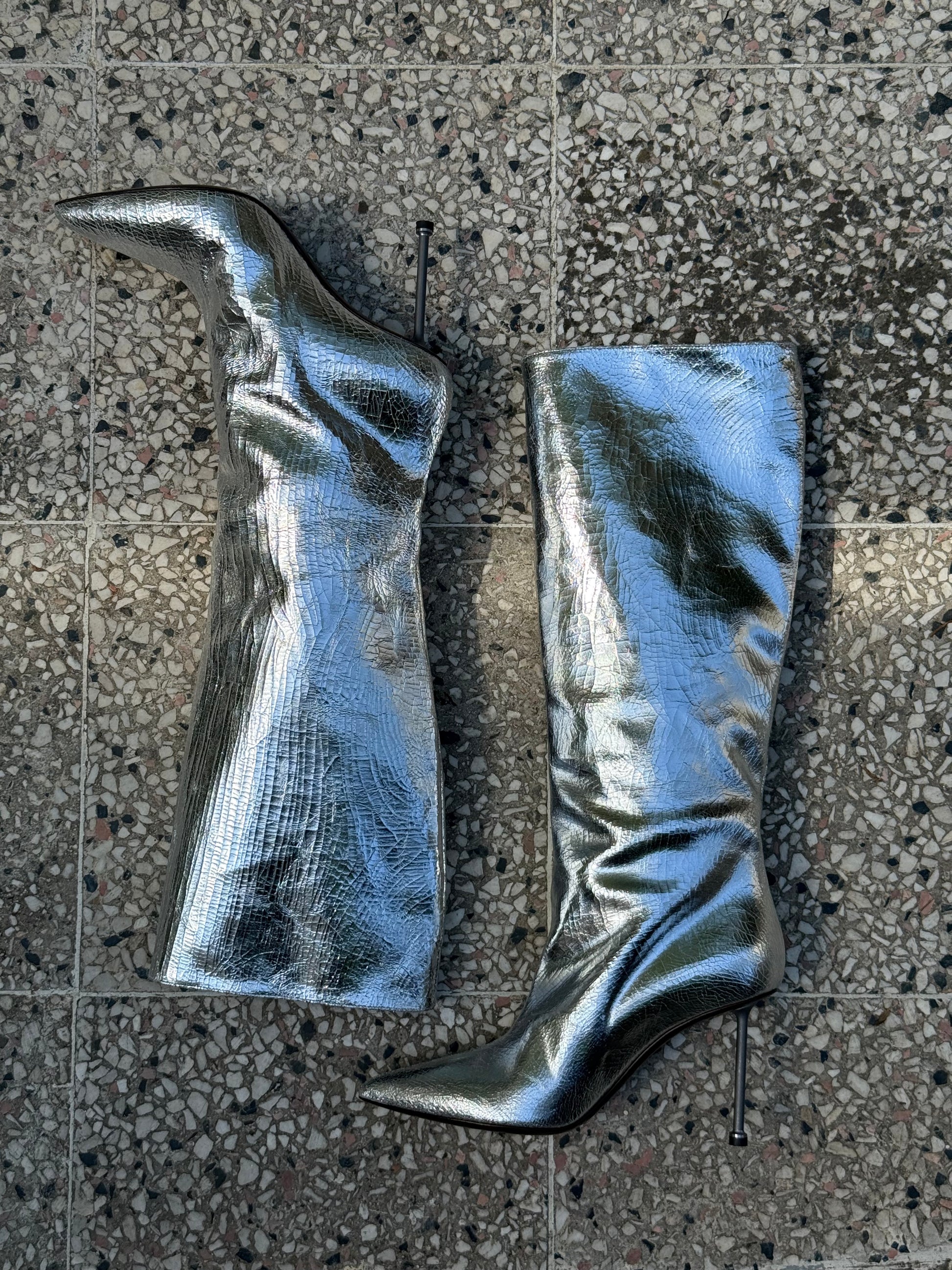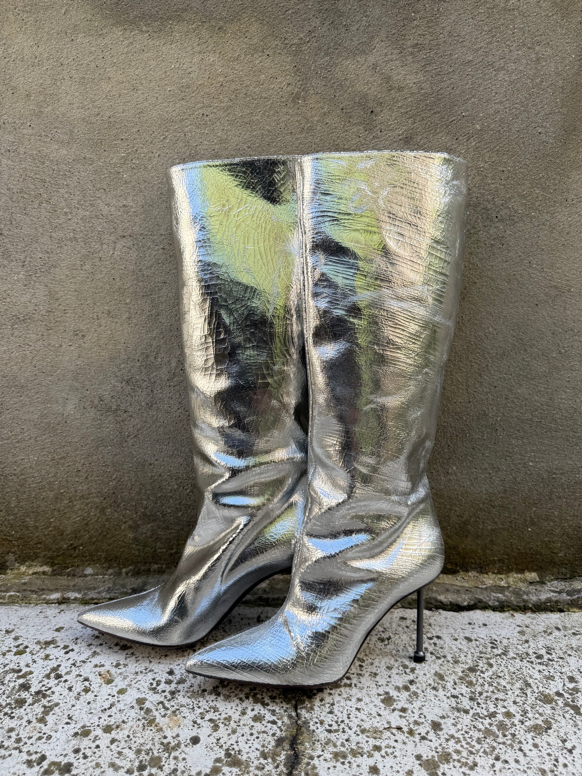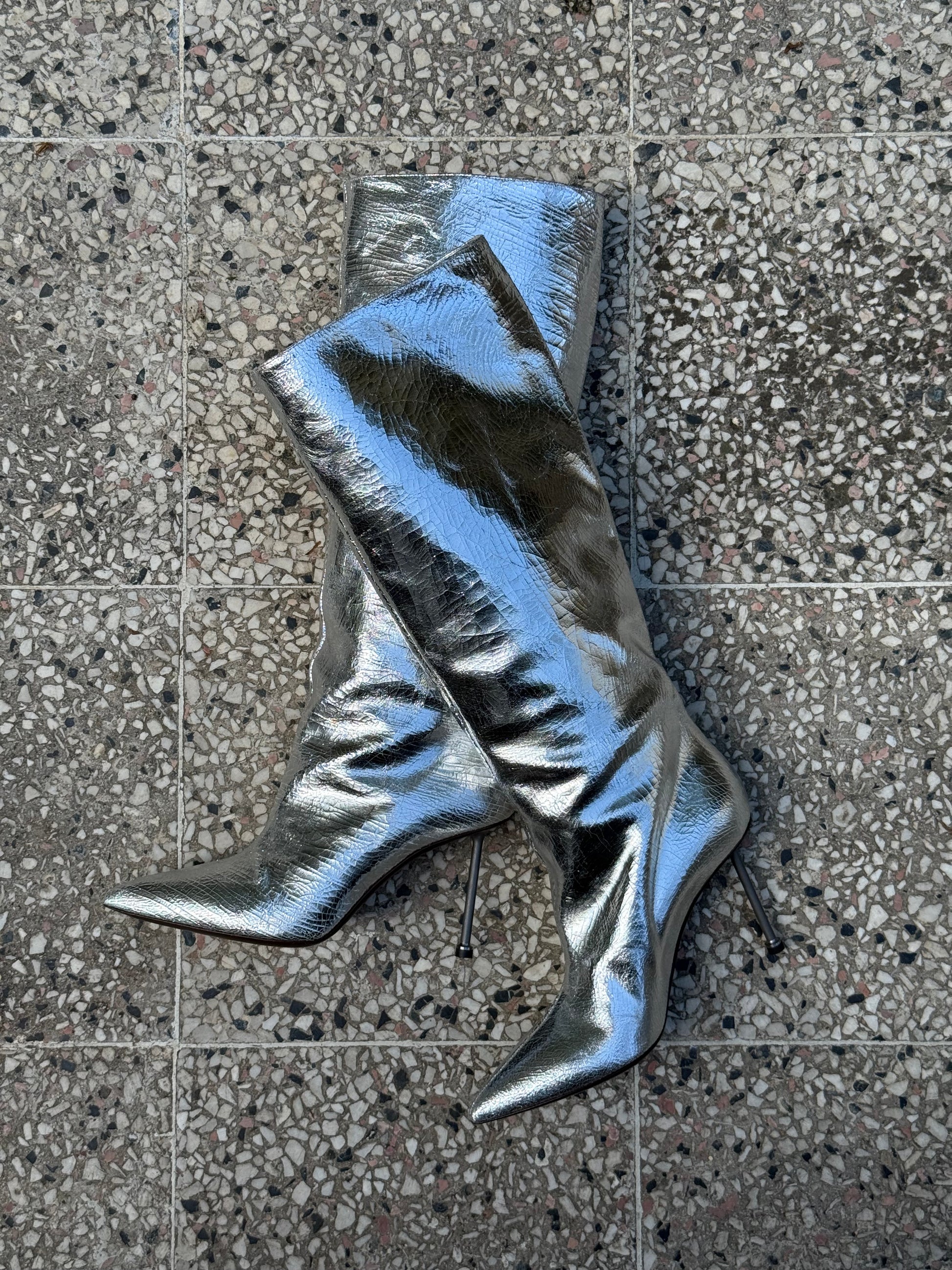 Kristina Fidelskaya - Gümüş Sivri Burunlu Çizme