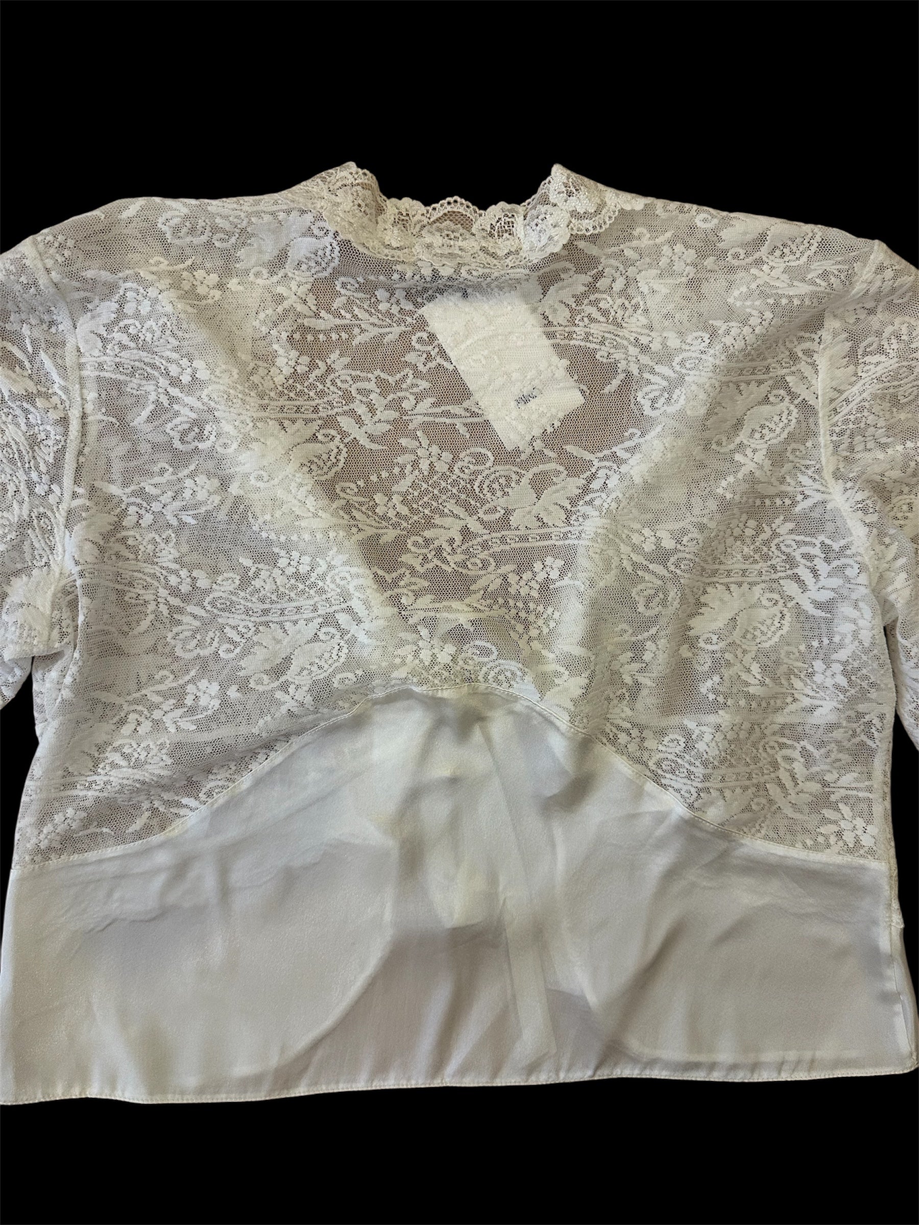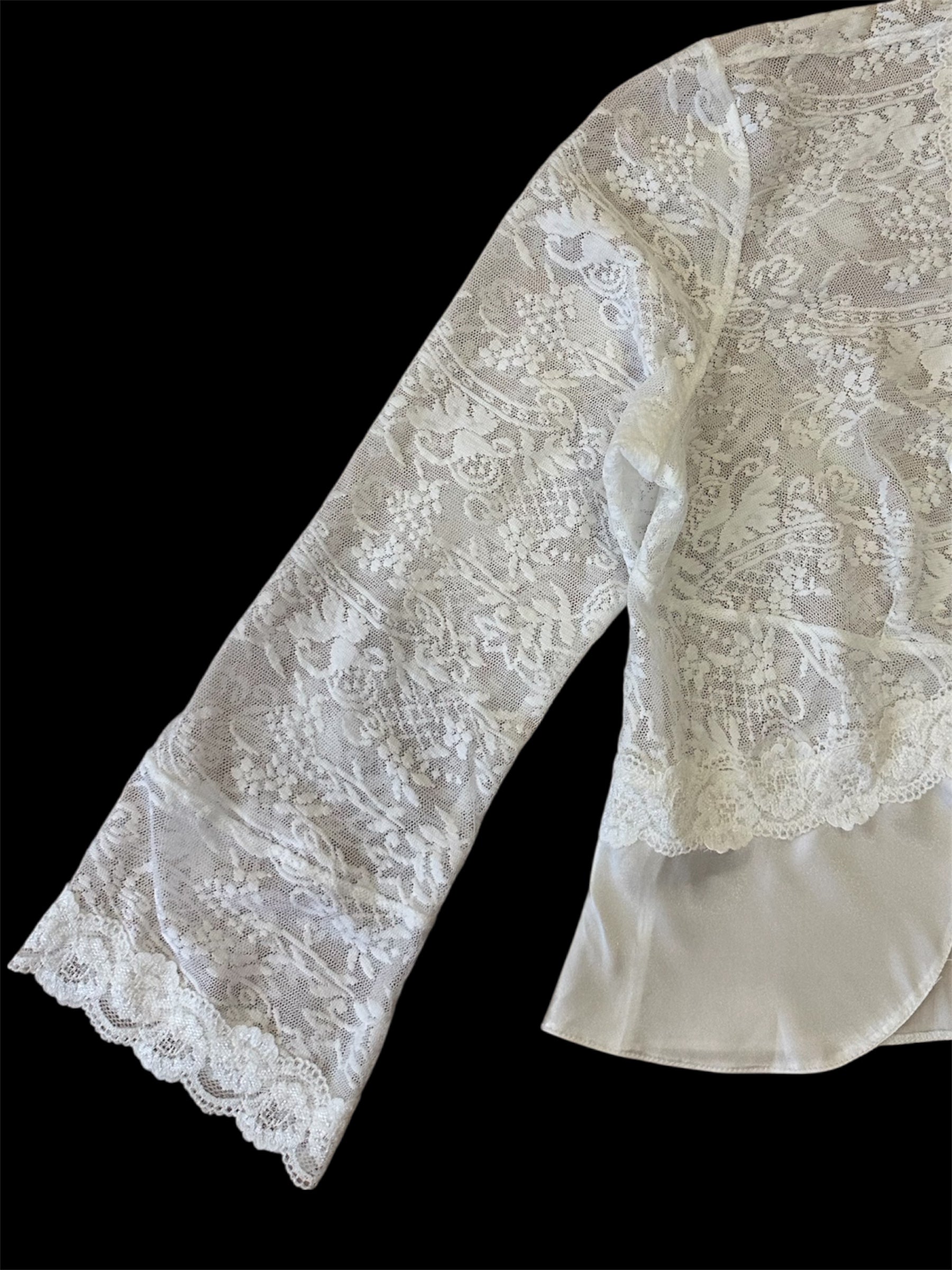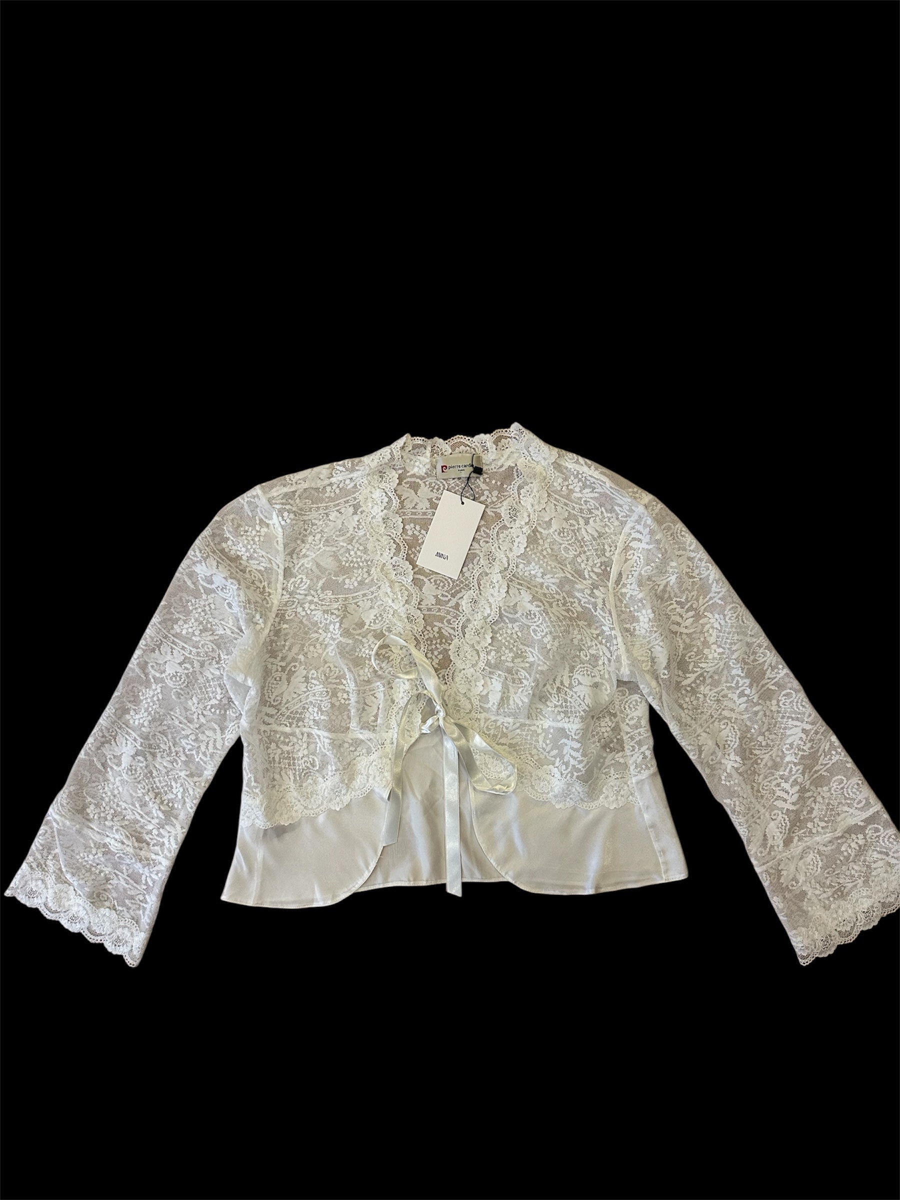 Pierre Cardin - Vintage Dantel Önden Bağlamalı Bluz